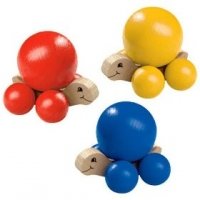 HABA 0666 - Roll, roll, roll. Colorful beech wood balls sit comfortably on the backs of these turtles. Simply use your hand to roll the ball and watch these turtles fly! Measures 2.7" x 2.7". Set of three - red, blue, yellow. Recommended for 18 months and up.